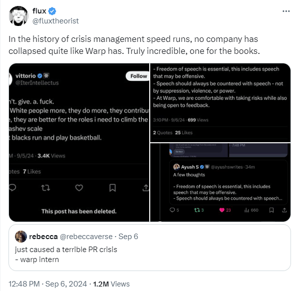 Warp (YC 23) We're building Rippling for Racists https://t.co/a4aN26QBiN— Matt Slotnick (@matt_slotnick) September 6, 2024