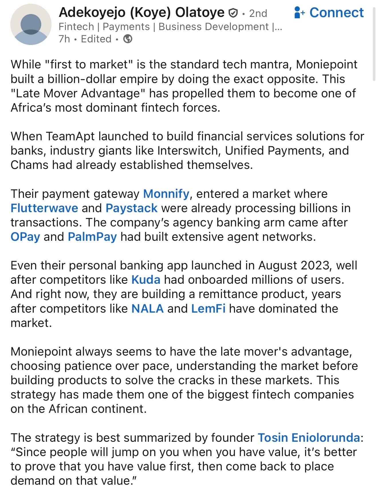 Moniepoint'sLate Mover Advantage.