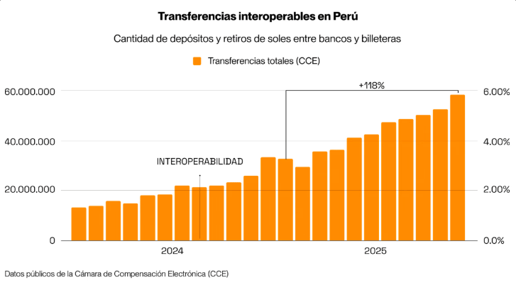 Peru recorded more than 540 million interoperable transactions between banks and digital wallets in 2025, a 118% year-on-year increase, highlighting the rapid expansion of digital payments across the country.