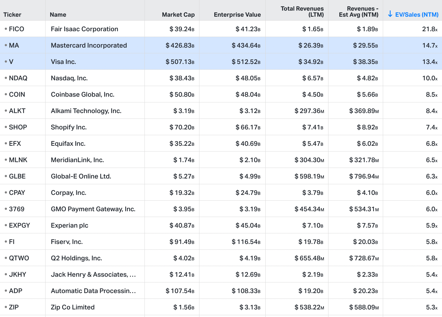 Visa (NYSE: V) & Mastercard (NYSE: MA)