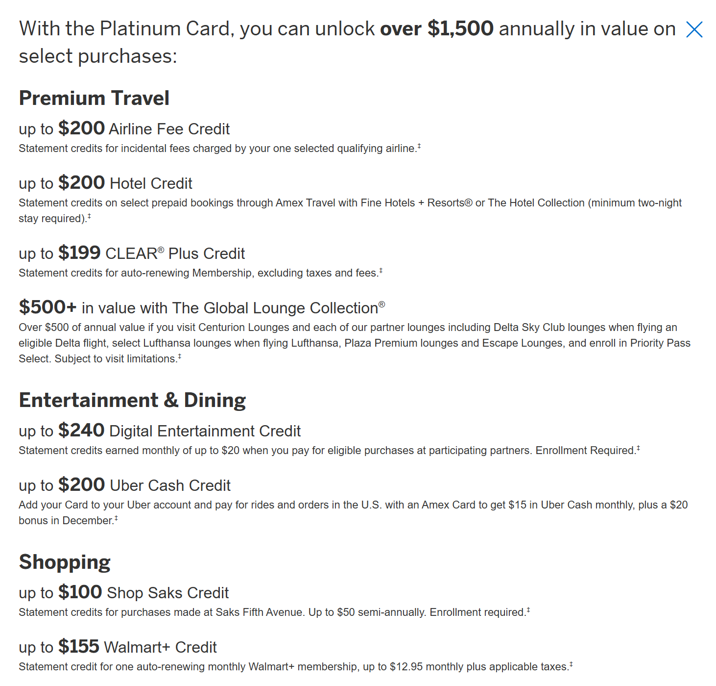 As of Aug. 2025, this is the shortlist of credits you can earn on the American Express Platinum Card. Mind you, these are all changing soon.