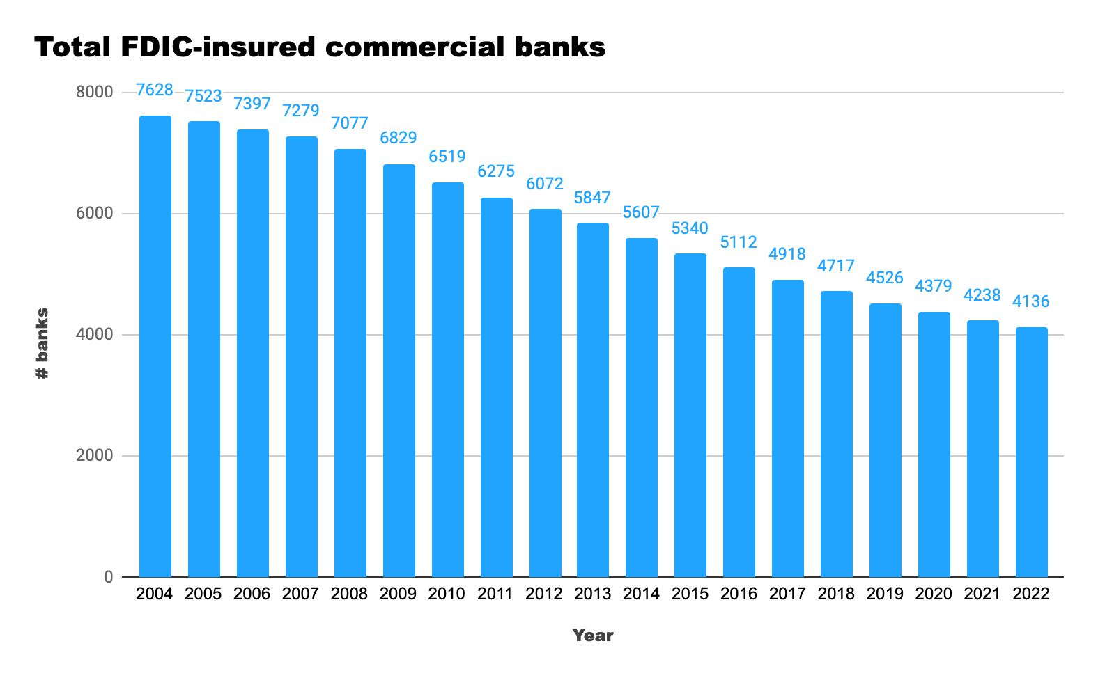 In the 2 months that followed, regional banks saw an aggregate $17.9 billion in deposits flow out to large banks and B2B fintechs (Brex, Mercury...) amid fears that smaller institutions might not have the reserves to back customers' deposits in the event of a wider bank run. Mass withdrawals sparked concerns that other banks would shut down, accelerating a trend of consolidation that's been eroding competition in the banking industry for the past few decades.