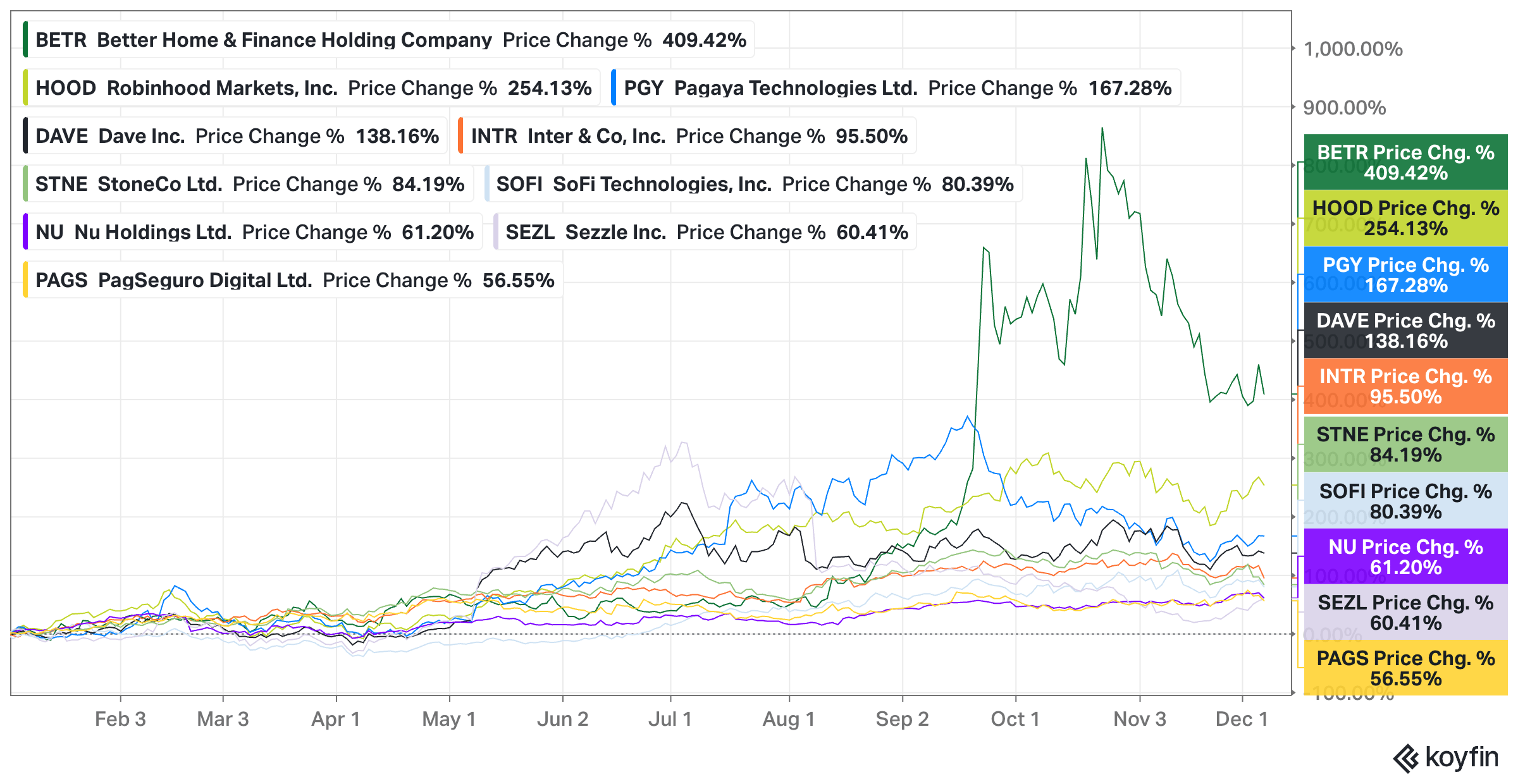 At the start of the year, I pointed out a pattern: in both 2023 and 2024, a handful of left-for-dead fintech stocks ended up topping the performance charts. In 2023, those were Affirm, Coinbase, and MoneyLion. In 2024, it was Sezzle, Dave, and Zip. I suggested that in 2025, the same might happen with names like Better, Pagaya, and Oportun. Well…