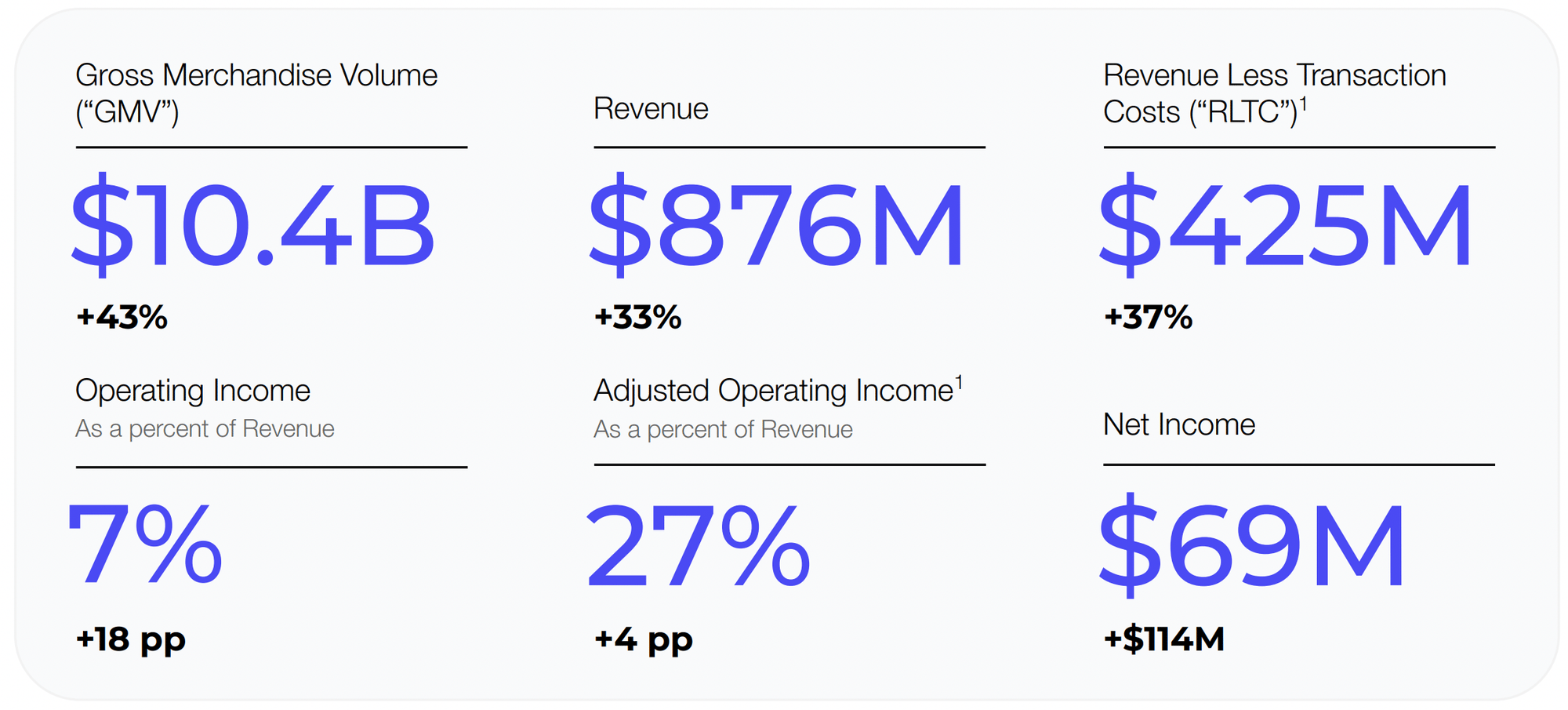 Affirm just closed out a stellar fiscal year. In Q4, Gross Merchandise Volume grew 43% YoY, revenue grew 33% YoY, and Revenue Less Transaction Costs, Affirm's gross profitability measure, grew 37% YoY. What's more impressive, Affirm posted a GAAP profit for both the quarter and the full year. Unlike Klarna, Affirm didn’t have to sacrifice growth to reach profitability.