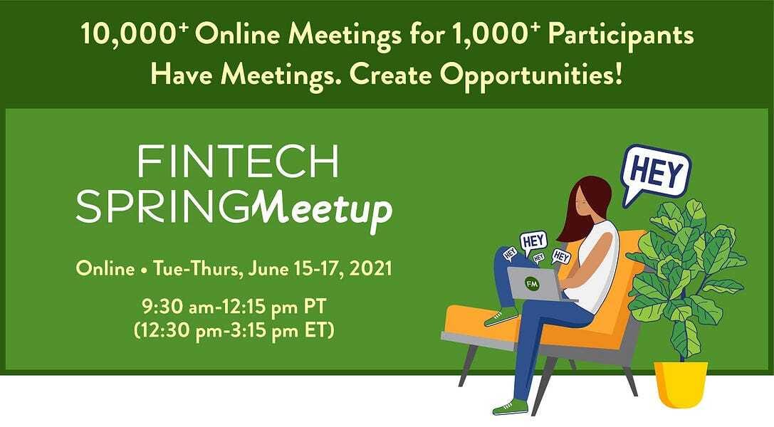 Join Fintech’s largest online interactive community! Introducing Fintech Spring Meetup -- a new online event designed to get you 3 months’ worth of meetings in just 3 half-days. Connect with the People You Know & Meet the People You Don’t. No Webinars. No Content. Just Meetings. Get Business Done! Learn More & Join Waitlist.