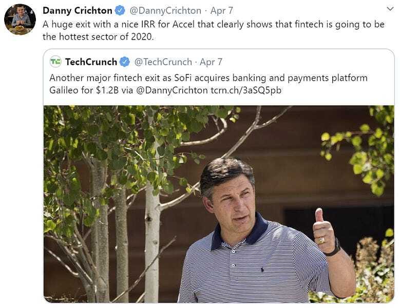 In the latest edition of a high-profile acquisition year for fintech, SoFi will acquire bank processor and infrastructure provider Galileo for $1.2 billion. The deal will be financed via $875 million in equity, $75 million in cash, and $275 million in debt. FT Partners dissects the deal in more detail, as does FTT+.