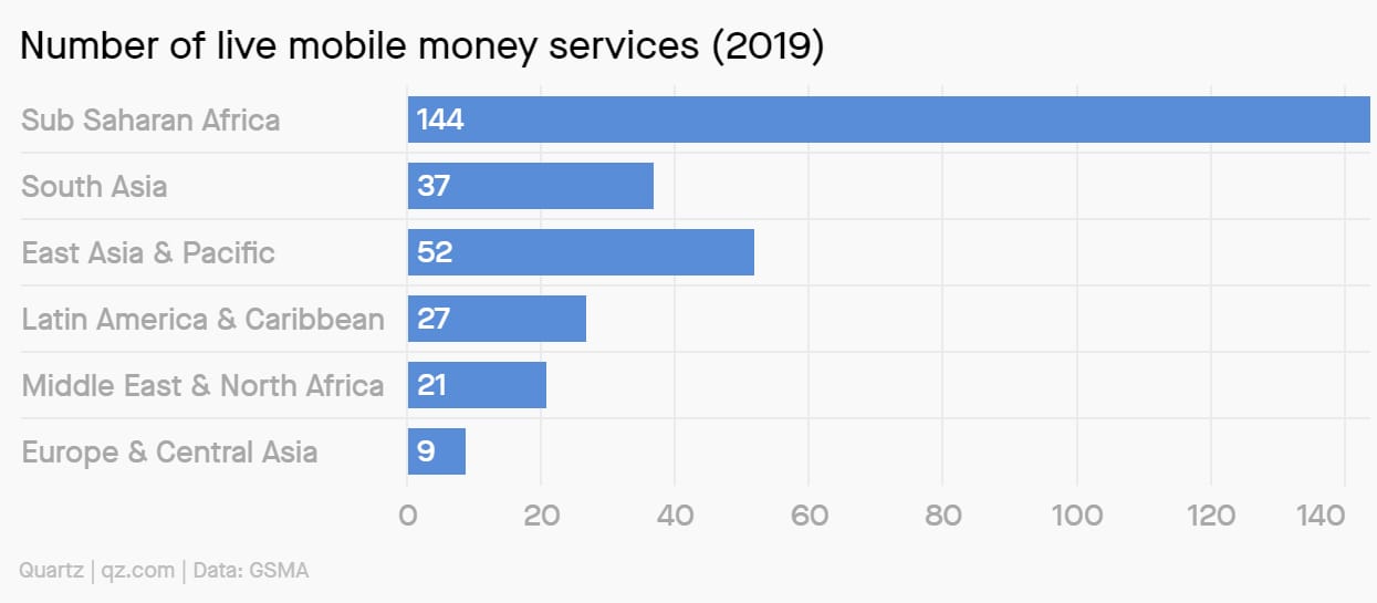 In Mobile money crossed a key milestone last year, Quartz details how the mobile money industry has grown to over one billion accounts. Much of that growth is being driven in sub-Saharan Africa, where popular cross-border money transfer and peer-to-peer payment apps are exploding in growth.
