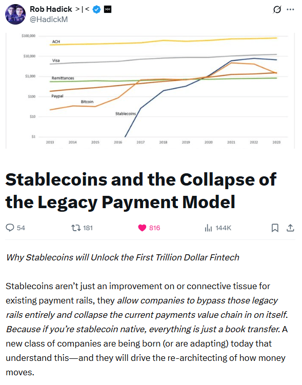 And if you needed any more validation for stablecoins, Circle stock is up 500%+ since IPO, with a $58 billion market cap: