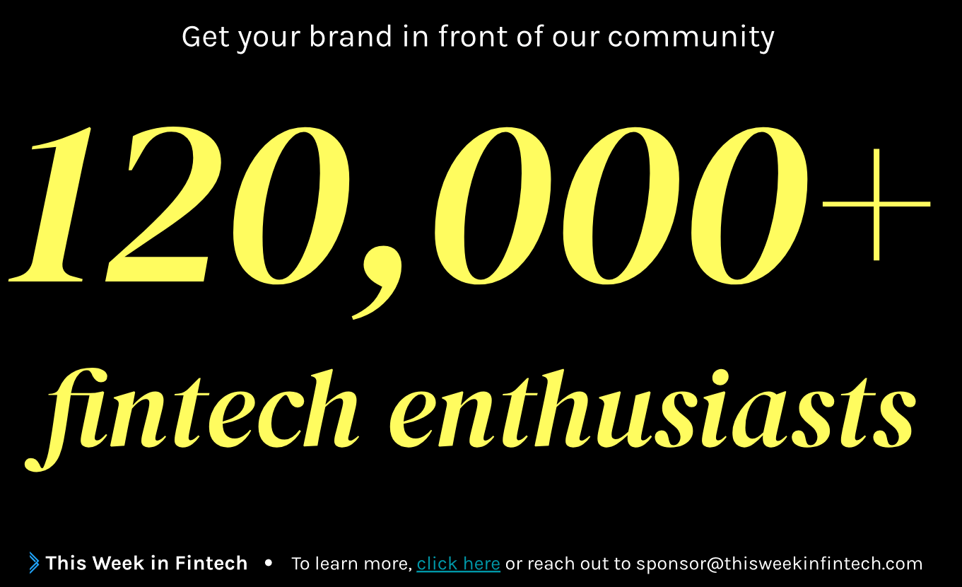 Please find another week of fintech financing events below. (PS: Have feedback for us? 👍👎 Let us know! Enjoying TWIF? Tips are always appreciated 🙏)