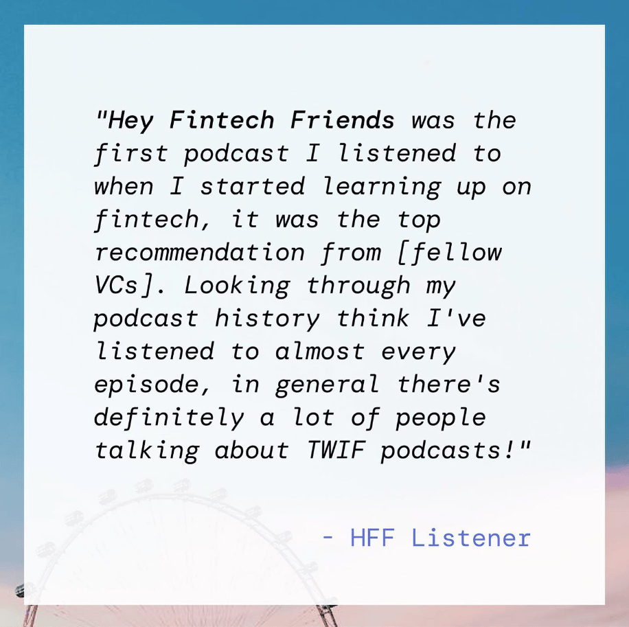 If you’re an early-stage startup founder raising equity or debt, we may be able to help - come check out our fund, The Fintech Fund (including a link to pitch us). Are you a fintech angel investor? Come join our syndicate.
