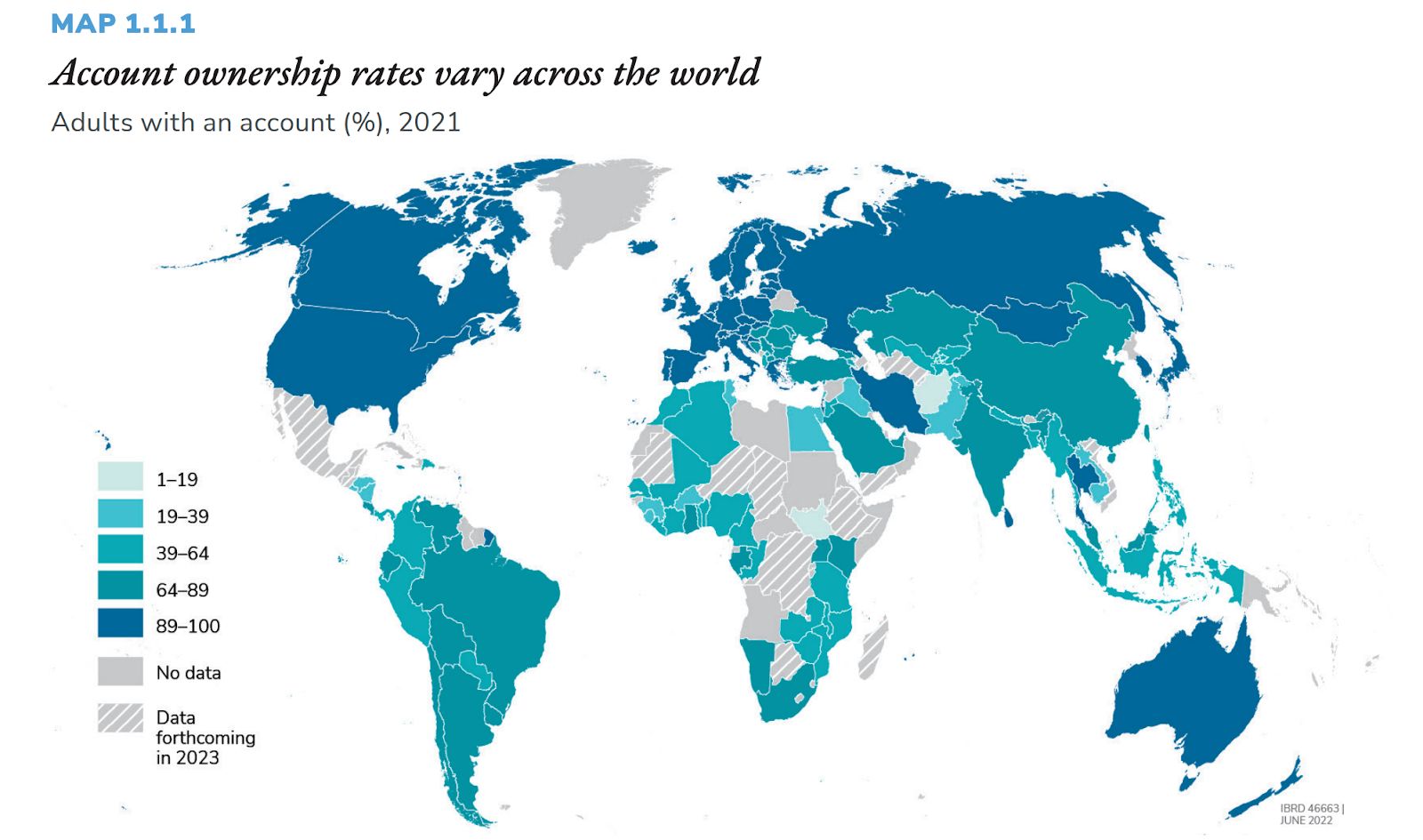Globally, the rate of mobile phone ownership is now 91% and rising. It's an encouraging foundation for growing the 76% share of adults who have a formal financial account, which brings us to...