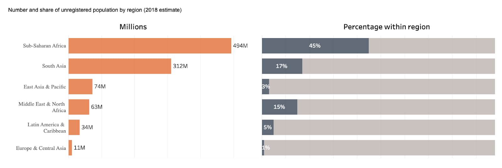Many countries are taking steps to standardize their identification systems, with digital verification playing a key role for populations like women and those living in rural areas– both of whom tend to face higher barriers in getting to a physical bank or mobile money agent to undergo KYC. The effect of digitizing ID systems on financial access is clear: When India launched its biometric digital ID system– Aadhaar– in 2010, only half the population had nationally-recognized identification and one-third of people owned a bank account. Within its first decade, Aadhar newly enabled 384 million people to open a bank account. A staggering 1.2 billion people– over 99% of India's population– is now enrolled in Aadhaar, and India's rate of financial account ownership has reached 80%.