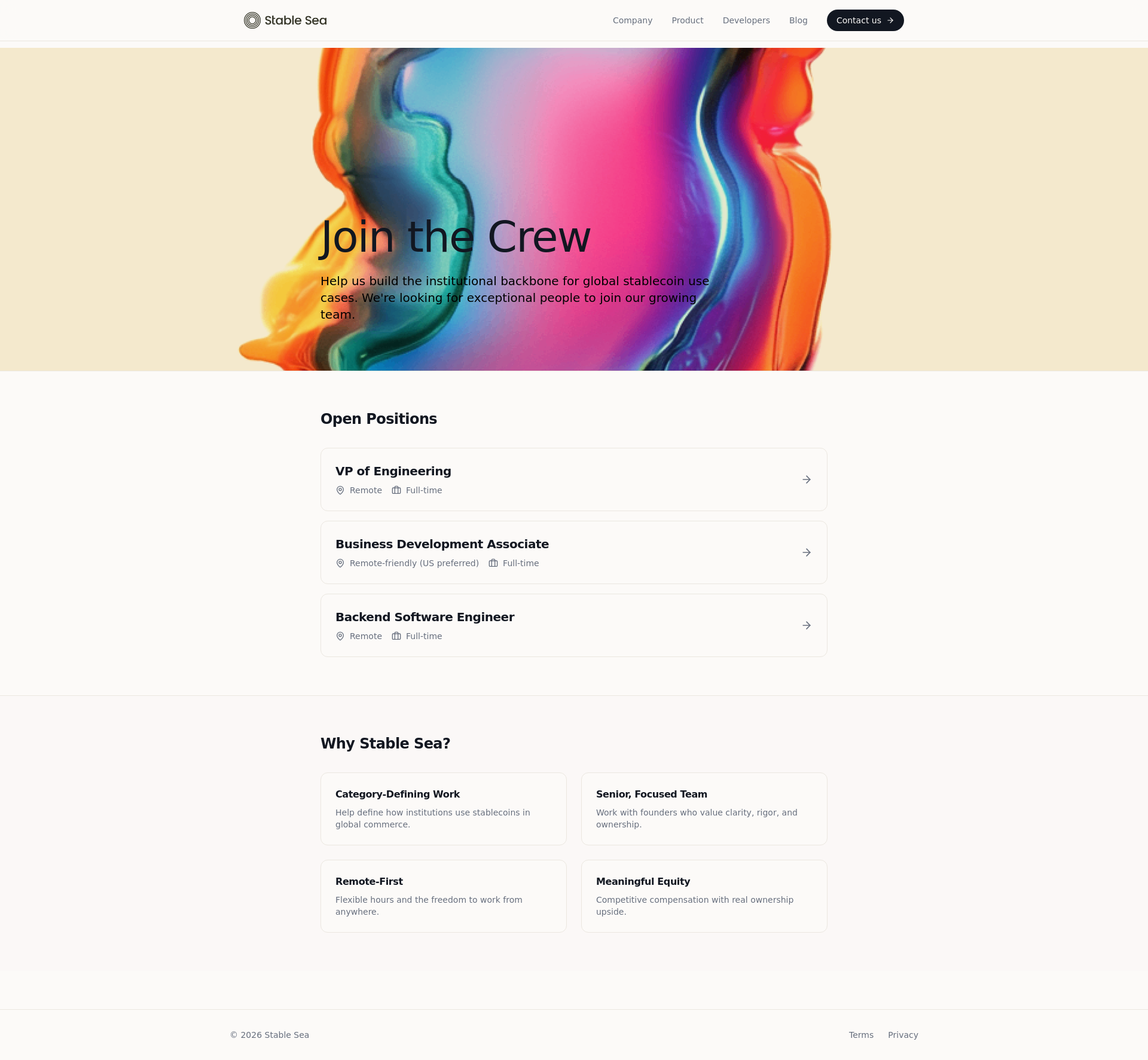 Lead the engineering team building the future of enterprise stablecoin infrastructure at Stable Sea.